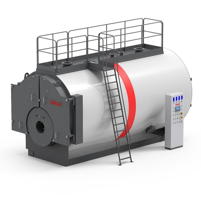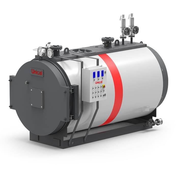 Паровые двухходовые котлы низкого давления, с омываемой топкой, КПД от 91% (STD) до 95% (HP) в зависимости от типа используемой трубы.